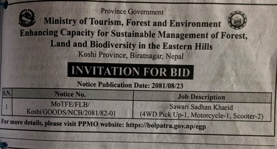 सवारी साधनको लागि बोलपत्रको निमन्त्रणा